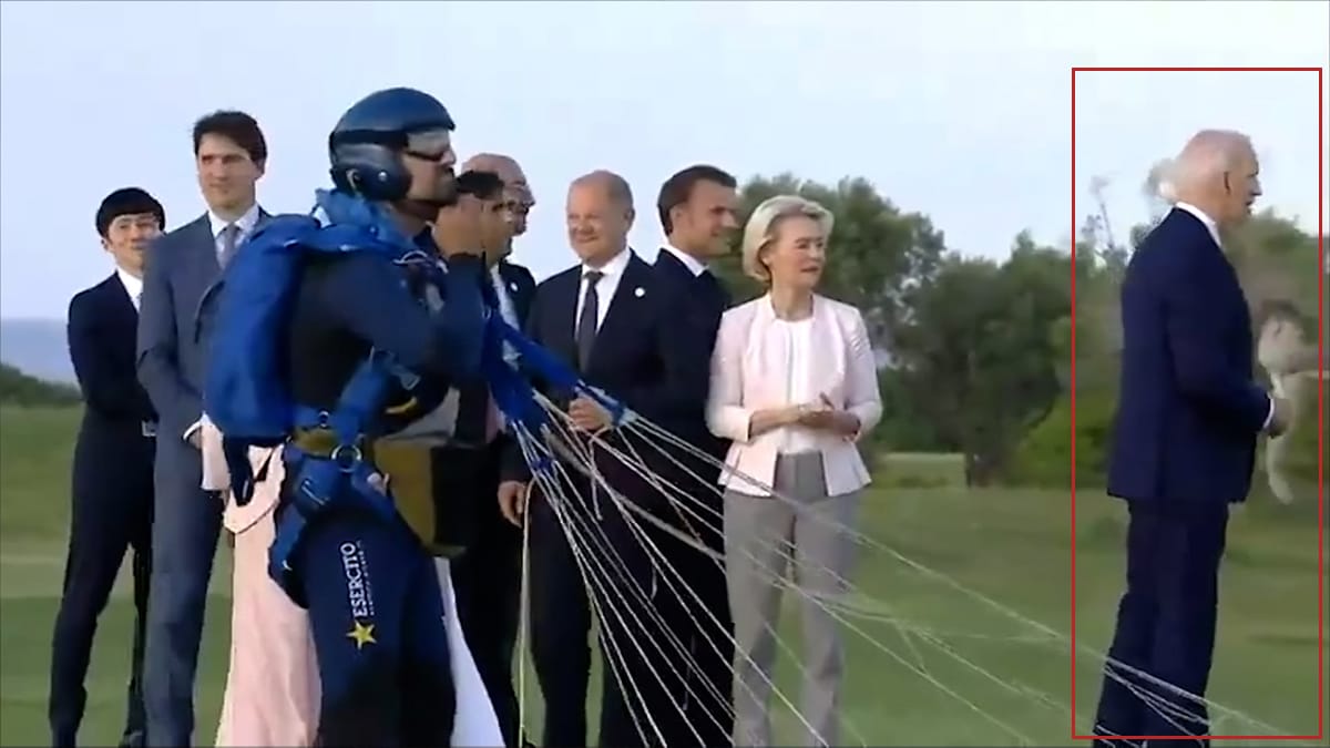 এক ভিডিওতে দেখা যায়, ইতালির প্রধানমন্ত্রী জর্জিয়া মেলোনির সাথে আলাপের মাঝেই হঠাৎ তাকে স্যালুট দিচ্ছেন বাইডেন। সম্মেলনের প্রকাশিত আরেক ভিডিওতে দেখা যায়, জোটের অন্যান্য নেতারা ছবির তোলার জন্য একদিকে দাঁড়িয়ে থাকলেও বাইডেন হঠাতই ঘুরে দাঁড়ান। এরপর একটু দূরে সরে গিয়ে অদ্ভুতভাবে হাসতে থাকেন।