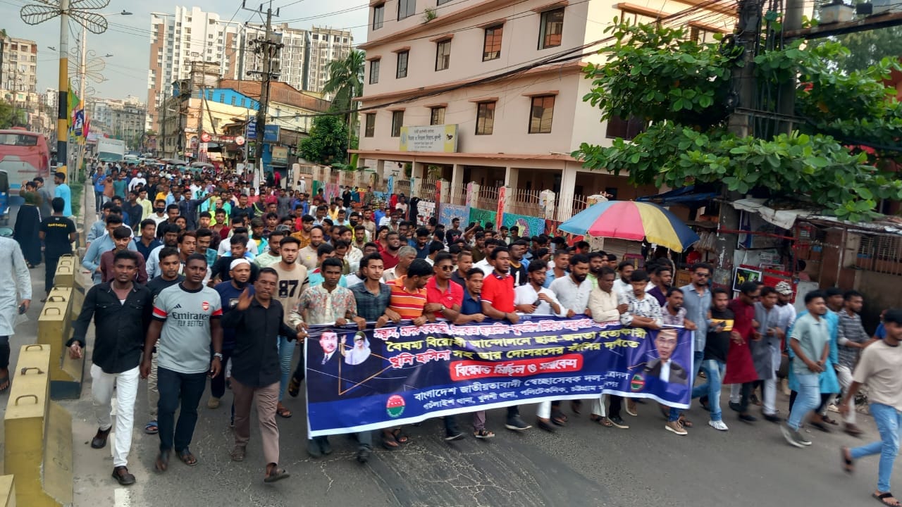 সন্ত্রাস,চাঁদাবাজ,মাদক নিমূল, ছাত্রলীগ- যুবলীগের চিহ্নিত অস্ত্রধারী সন্ত্রাসীদের গ্রেপ্তার এবং খুনি হাসিনা’র ফাঁসির দাবিতে 2নং গেইট ষোলশহর সুপার মার্কেট এর সামনে সমাবেশে চট্টগ্রাম মহানগর স্বেচ্ছাসেবক দলের যুগ্ম সাধারণ সম্পাদক ইন্জিনিয়ার জমির উদ্দিন নাহিদ বলেন -বিগত ১৭ বছর এ নাছিরাবাদের জনপদ ছিল সন্ত্রাসের স্বর্গরাজ্য।ছাত্র-জনতার বিপ্লোবের মাধ্যমে হাজারো শহীদের রক্তের বিনিময়ে দ্বিতীয় স্বাধীনতা অর্জন হয়েছে। আমাদের এ অর্জন কে ধ্বংস করতে ইতিমধ্যে কিছু অনুপ্রবেশকারী দলের নাম ভাঙ্গিয়ে সন্ত্রাসী কর্মকাণ্ডে জড়িয়ে দলের ভাব নষ্ট করার চেষ্টা করছে। তাদের কে কঠোর হাতে দমন করার ঘোষনা দেন ছাত্র জনতা।বিএনপি ভারপ্রাপ্ত চেয়ারম্যান দেশনায়ক তারেক রহমানের রাষ্ট্র সংষ্কারের ৩১দফা বাস্তবায়নে সমাজের সর্বস্তরের সবাইকে নিয়ে কাজ করার আহ্বান জানান। খুলশী থানা স্বেচ্ছাসেবক দলের সদস্য সচিব বিল্লাল হোসেন বাবুর সভাপতিত্বে পাঁচলাইশ থানা ছাত্রদলের যুগ্ম আহ্বায়ক মোহাম্মদ মেহেদী হাসান শামীমের পরিচালনায় এতে আর বক্তব্যে রাখেন চট্রগ্রাম মহানগর ছাত্রদলের সাবেক ভারপ্রাপ্ত আহবায়ক আসিফ চৌধুরী লিমন, চট্রগ্রাম মহানগর স্বেচ্ছাসেবক দলের কৃষি বিষয়ক সম্পাদক কামরুল হাসান,সহ সম্পাদক কামাল হোসেন, বেসরকারি বিশ্ববিদ্যালয় কেন্দ্রীয় ছাত্রদলের সাবেক যুগ্ম সম্পাদক জাবেদ সাফায়েত,৪২ নং ওয়ার্ড স্বেচ্ছাসেবক দলের আহ্বায়ক ওসমান গনী, সিনিয়র যুগ্ম আহ্বায়ক পাপ্পু আহমেদ,নগর স্বেচ্ছাসেবক দলের নেতা মো.রনি,মো.মনির হোসেন, পাচলাইশ থানা স্বেচ্ছাসেবক দলের সদস্য ওমর ফারুক, মো.শাহদাত, চট্টগ্রাম মহানগর ছাত্রদলের সাবেক সহ সাংগঠনিক সম্পাদক মোহাম্মদ জাহাঙ্গীর আলম, চট্রগ্রাম পলিটেকনিক ছাত্রদলের আহবায়ক মো.হানিফ,চট্টগ্রাম পলিটেকনিক ছাত্রদলের সিনিয়র যুগ্ম আহ্বায়ক শাহরুল আল রাফি,প্রমূখ।বিক্ষোভ মিছিলটি ২নং নম্বর গেইট থেকে শুরু হয়ে রহমান নগর রুবি গেইট টেকসটাইল হযে পলিটেকনিক মোড়ে এসে শেষ হয়।