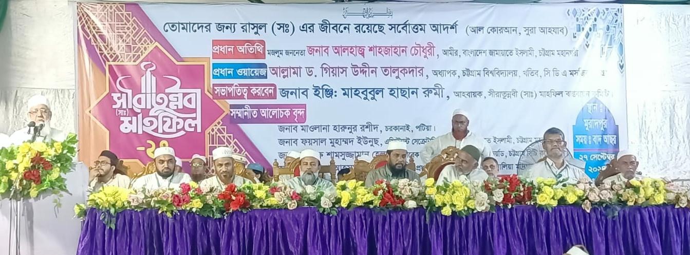 বাংলাদেশ জামায়াতে ইসলামী পাঁচলাইশ থানার উদ্যোগে ঐতিহাসিক মুরাদপুর চত্বরে আয়োজিত বিশাল সীরাতুন্নবী(সাঃ) মাহফিলে প্রধান অতিথির বক্তব্যে চট্টগ্রাম মহানগরী জামায়াতের আমীর জননেতা আলহাজ্ব শাহজাহান চৌধুরী এসব কথা বলেন।
