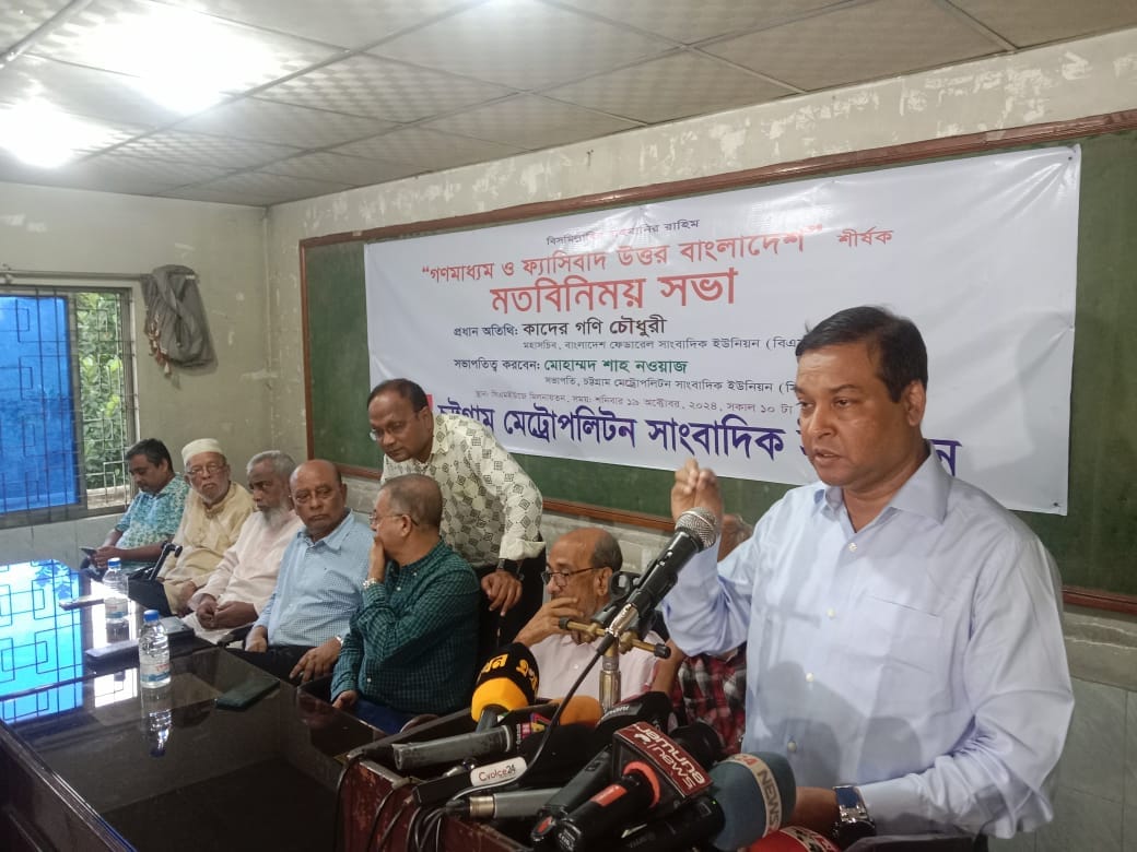তিনি আজ শনিবার (১৯ অক্টোবর) সকালে চট্টগ্রাম মেট্রোপলিটন সাংবাদিক ইউনিয়ন কার্যালয়ে সাংবাদিকদের সঙ্গে আয়োজিত ‘গণমাধ্যম ও ফ্যাসিবাদ উত্তর বাংলাদেশ’ শীর্ষক এক মতবিনিময় সভায় এসব কথা বলেন।