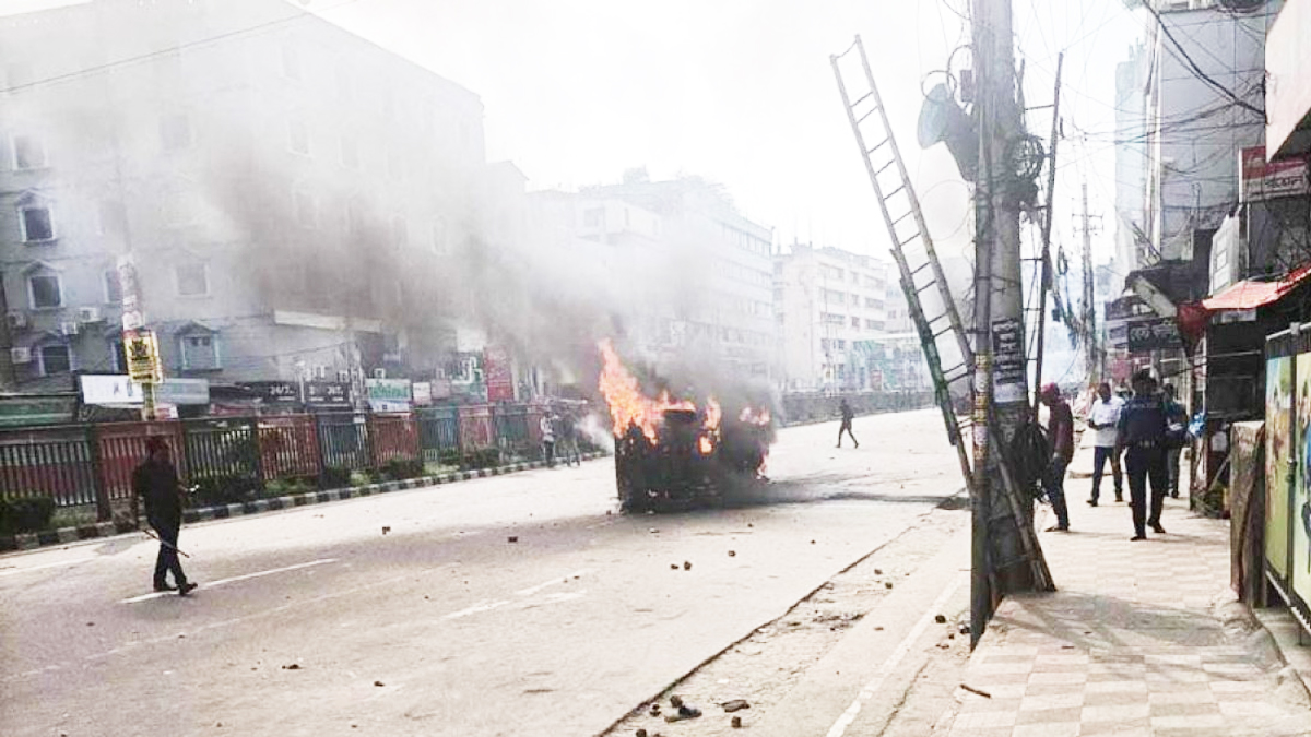 পোশাক শ্রমিকদের বিক্ষোভ: সেনা ও পুলিশের গাড়িতে আগুন, গুলিবিদ্ধ ২
