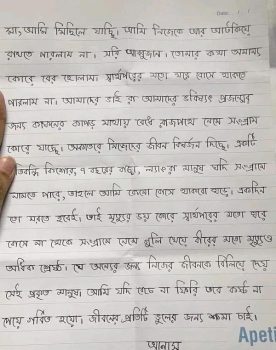আমাদের ভাইরা আমাদের ভবিষ্যৎ প্রজন্মের জন্য কাফনের কাপড় মাথায় বেঁধে রাজপথে নেমে সংগ্রাম কোরে যাচ্ছে। অকাতরে নিজেদের জীবন বিসর্জন দিচ্ছে। একটি প্রতিবন্ধী কিশোর, ৭ বছরের বাচ্চা, ল্যাংরা মানুষ যদি সংগ্রামে নামতে পারে, তাহলে আমি কেনো বোসে থাকবো ঘরে…।’ বাবা-মায়ের হাত থেকে সেই চিঠি এখন ১৮ কোটি মানুষের হাতে হাতে। যে চিঠিটা কাঁদিয়েছে বাংলাদেশসহ সারা বিশ্বের মানবিক মানুষকে।