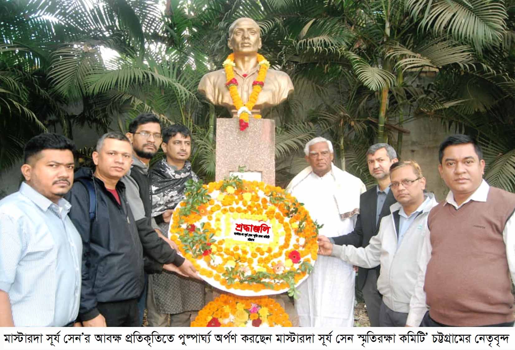 সোমবার (১২ জানুয়ারি) নগরীর জেএমসেন হল চত্বরে সূর্যসেনের ভাস্কর্যে শ্রদ্ধা জ্ঞাপন করা হয়।