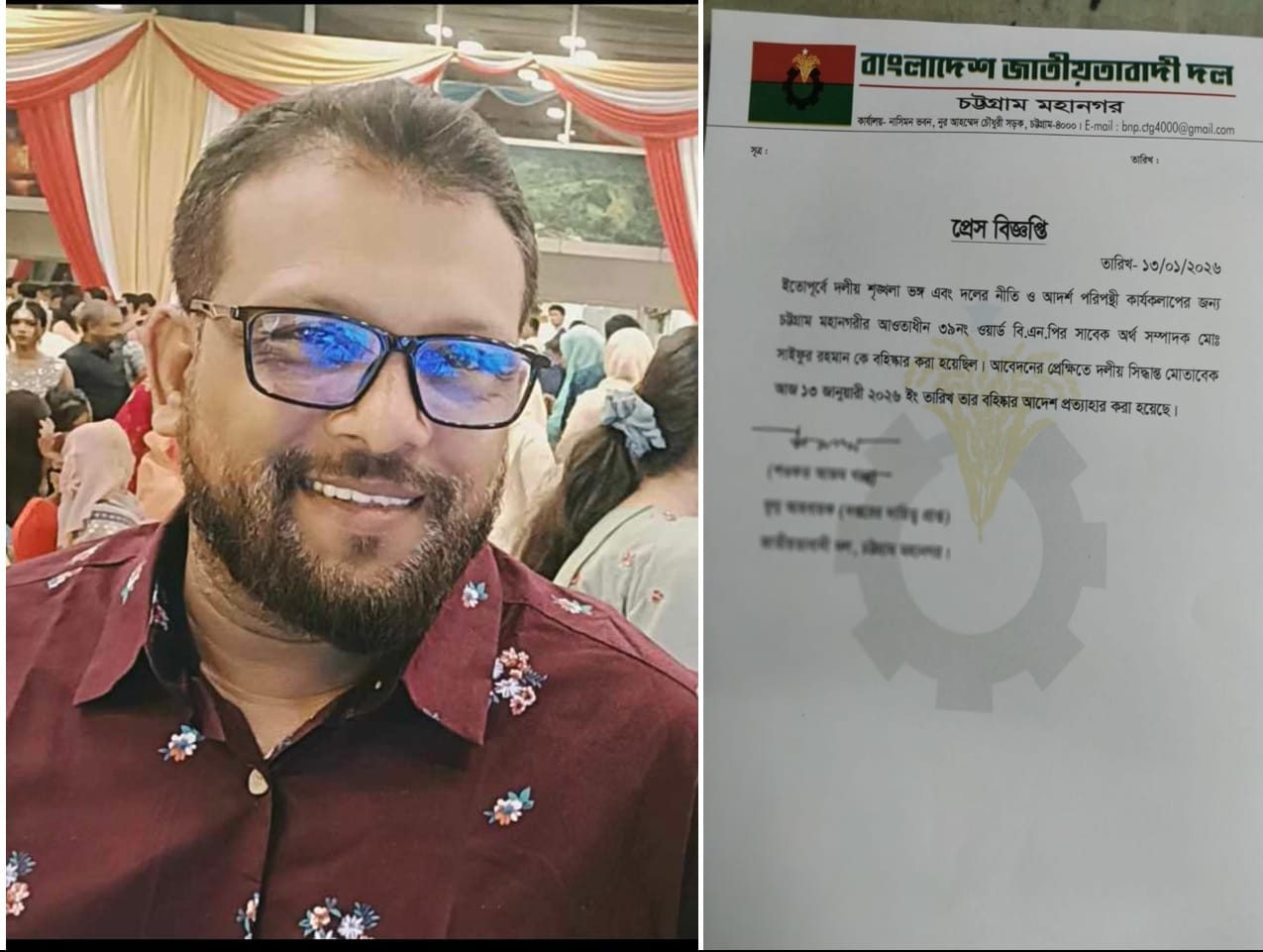 ইতোপূর্বে দলীয় শৃঙ্খলা ভঙ্গ এবং দলের নীতি ও আদর্শ পরিপন্থী কার্যকলাপের জন্য মোঃ সাইফুর রহমান কে বহিস্কার করা হয়েছিল।