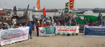বিশ্ব নদী দিবস উপলক্ষে ওয়াটারকিপার্স বাংলাদেশ ধরিত্রী রক্ষায় আমরা (ধরা) চট্টগ্রাম, ব্লু প্ল্যানেট ইনিশিয়েটিভ, মাসিক প্রাণপ্রকৃতির আয়োজনে চট্টগ্রামের প্রাণ কর্ণফুলী নদীর তীরে নতুন ফিশারি ঘাট