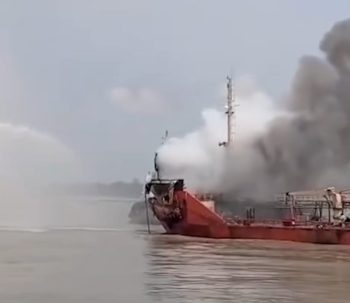 নিজস্ব প্রতিবেদক : নগরীর পতেঙ্গার কর্ণফুলী নদীর ডলফিন জেটিতে বাংলার জ্যোতি নামে একটি তেলবাহী জাহাজে আগুন লেগে বিস্ফোরণের ঘটনা ঘটেছে।বিস্ফোরণের পর জাহাজটিতে আগুন ধরে যায়।