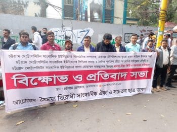 চট্টগ্রাম মেট্রোপলিটন সাংবাদিক ইউনিয়ন (সিএমইউজে ) নেতৃবৃন্দের নামে ফ্যাসিবাদের দোষর কর্তৃক হয়রানি মূলক জিডি প্রত্যাহারে ২৪ ঘন্টার আল্টিমেটাম দিয়েছেন চট্টগ্রামের বিক্ষুব্ধ বিভিন্ন শ্রেনি পেশার মানুষ।